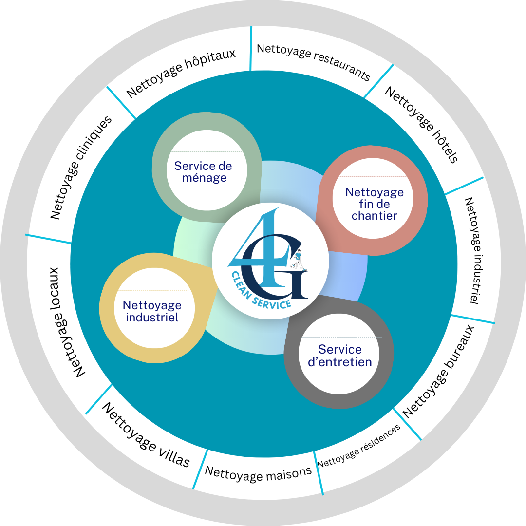 Grâce à une équipe qualifiée, des produits respectueux de l’environnement et des équipements performants, 4G CLEAN SERVICE garantit un travail soigné, rigoureux et conforme aux normes d’hygiène les plus exigeantes. Notre objectif est de créer des environnements sains, propres et agréables, en apportant à nos clients fiabilité, flexibilité et qualité de service au quotidien.